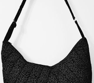 Sac noir avec dessins blancs, en tissu matelassé Forme croissant Fermé par zip. Bandoulière réglable en longueur Ce sac n'a jamais été utilisé Annonce en ligne = article dispon