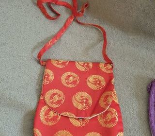 Sac style asiatique pour cérémonies, soirées ou décontracté Fermeture par pression Dimensions : - longueur de la anse : 50 cm - hauteur du sac : 21 cm - largeur : 17 cm Envo