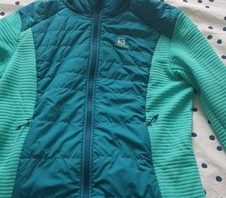 Vends veste technique Salomon à capuche femme, taille S/M. Portée une seule fois. Idéale pour les randos et courses à pied. Envoi possible avec frais supp Contact par tel