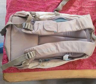 Sac à dos de marque Salomon capacité 20 litres en très bon état. Couleur gris extérieur, bleu ciel intérieur Nombreuses poches Cordon pour attacher des clés