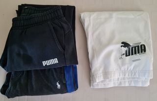 Description 2 Joggings (10-12 ans et 11-12 ans) 1 short (10 ans) Prix : 5,00 € l'unité ou 10,00 € le lot 1 jogging (14 ans) 1 Jean (12 ans) 1 bermuda de bain (12 ans) 1