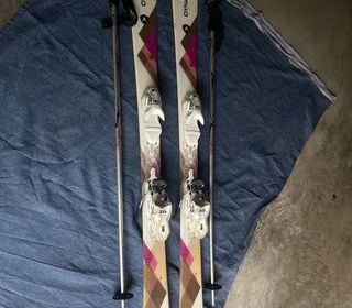 Vends paire de ski femme, bâtons inclus. Skis Dynastar. Taille skis 155 cm, bâtons 115 cm. Parfait pour essayer sans payer une location. Remise en mains propres.