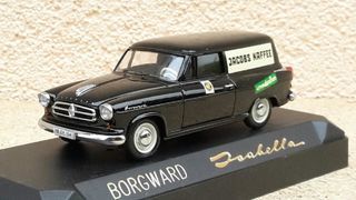 Vds Borgward Isabella Kombi tôlé ?Jacobs-Kaffee' 1958 (réf.1013) de la marque SOLIDO/VEREM à l'échelle 1/43ème en zamak, plastique et résine (carrosserie) ; véhicule de couleur noi