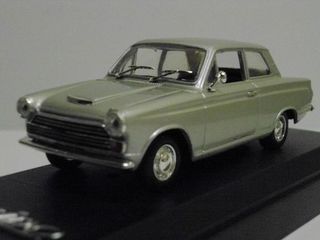 Vds Ford Cortina MK1 1963 réf. 4573 de la marque SOLIDO à l'échelle 1/43ème en zamak et plastique. Modèle réalisé en 2003 de couleur gris argent. Produit vissé sur un socle imprimé