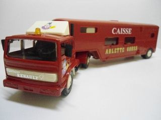 Vds camion Renault + semi-remorque caisse Cirque Arlette Grüss (réf.824) à l'échelle 1/50ème en zamak et plastique. Ce modèle a été réalisé par SOLIDO/VEREM en 1997. Le produit est