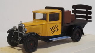 Vds Citroën C4F brasseur promotionnel 1930 de la marque SOLIDO à l'échelle 1/43ème de couleur jaune/noir en zamak et plastique. Produit vissé sur un socle imprimé recouvert d'une