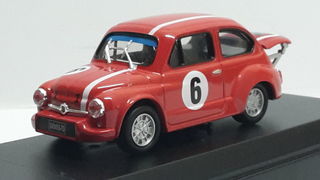 Vds Fiat 600 Abarth 1970 réf. 4590 de la marque SOLIDO à l'échelle 1/43ème en zamak et plastique. Modèle de couleur rouge réalisé en 2004. Produit vissé sur un socle imprimé recouv