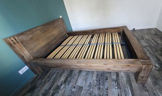 Je vends un lit double en bois massif avec sommier à lattes intégré (il manque 1 latte mais ce n'est pas gênant). Structure épaisse, très robuste, fabriquée pour durer ? rien à vo