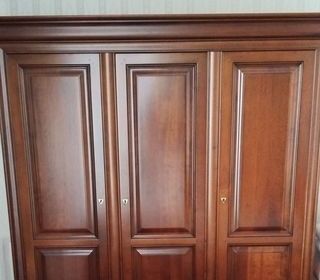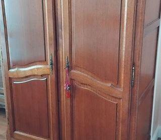 Chambre complète en merisier modèle Biarritz style Louis Philippe (meuble Jean Lefebvre) en très bon état Lit 2 personnes avec matelas et sommier Armoire 3 portes (2 portes pende