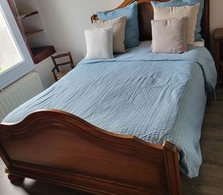 Vends un lit en bois avec sommier à lattes Tour chiné lin Très bon état A retirer à Wicres VISIBLE = DISPONIBLE