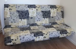 TRES BON ETAT Canapé Clic clac convertible Dimensions matelas 190x125 Avec espace de rangement en dessous Sommier en parfait état Housse épaisse et bien emboîtante, imprimé