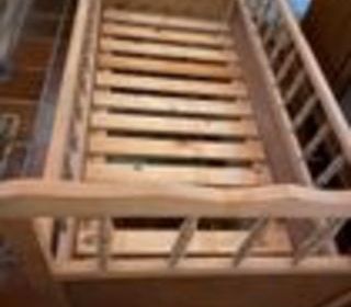 vends lit enfant avec sommier lattes pour matelas (non fourni) de 60 x 140 cm. Hauteur: 80cm en tête de lit, 70cm en pied de lit. Bois naturel, peut être peint, vernis ...
