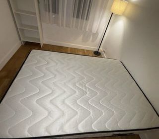 Je vends un lit (matelas + sommier + 4 pieds en bois) 140 x 190 cm - Hauteur : 24 cm - Ressorts ensachés - 7 zones - Matelas 24 cm. Il est presque neuf utilisé seulement 2 mois. I