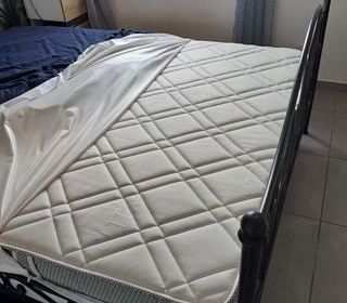 lit en chene 140 avec sommier metalique et matelas,le tout en bon etat.