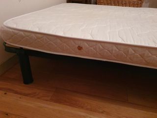 Sommier+matelas très bon état 140x190. Sommier lattes cadre laqué marine avec ses 4 pieds. Matelas mousse très propre.