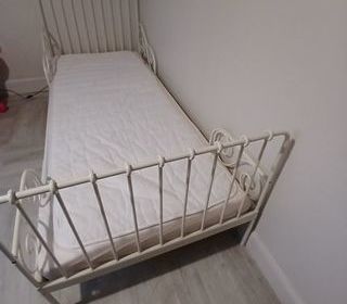 Matelas Pirelli très haut de gamme en très bon état, ma fille ne pèse que 45 kg, avec sommier relevable très pratique pour soulever la tête si besoin, et lit métal blanc valeur ne