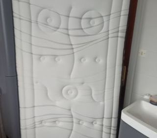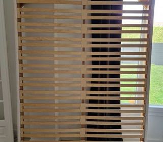 Sommier à lattes en bois et tissu crème, 140cm x 190cm, très bon état, remise en main propre uniquement