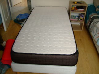 deux lits de 90x190 matelas tapissier 90x190 en mousse de 22cm d'épaisseur sommier tapissier 90x190 plus 2 couettes 140x200 plus 2 housses de couettes plus les pieds en bois pour