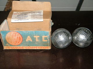 Jeu de 2 boules de pétanque marque OBUT ATC diamètre 74 poids 720 g 3 stries agrée par les fédérations certificat d'origine coffret d'origine pas de livraison contact té