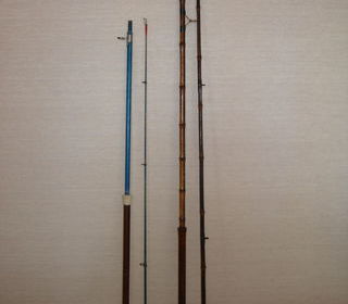 Vends cette paire de cannes à pèche très solides : 1°canne métal , 2,50 mètres en de brins de 1,25 m 2°canne bambou japonais garanti , marque PLATT , 2,94 mètres longueur en 2 b