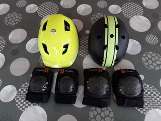 Lot de 2 casques B-Twin S 50/54 cm & S 53/56 + protections basic Oxelo.