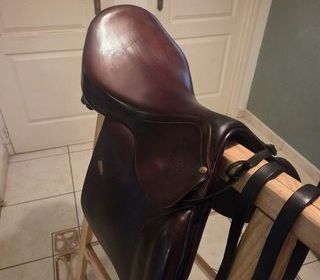 Selle forestier, d'occasion mais reste en bon état, taille 17 ST , couleur havane, vendue avec ses étrivières de la même marque , et des étriers simples en composite. Prix 400€