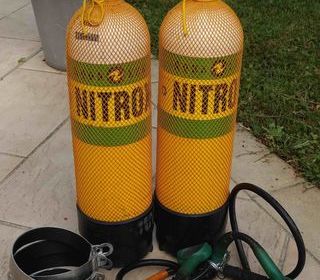 suite arrêt activité vends 2 Bouteilles Nitrox Aqualung Faber de 2007 de 6 litres PS 200Bars avec robinetterie, comme neuves requalifiées 04/21 avec sangles de transport. Détendeur