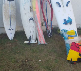2 planches à voile ( dont 1 enfant)avec 4 voiles et un surf enfant
