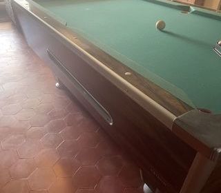 Vente en parfait état billard américain avec monnayeur et cannes de billard à prendre sur place