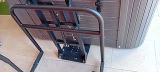 Jacuzzi couleur cuve blanc cristal nombreux jets pour massages jupe du Jacuzzi en pvc gris + couverture+ escalier deux marches+ leve couverture état neuf très peu servi