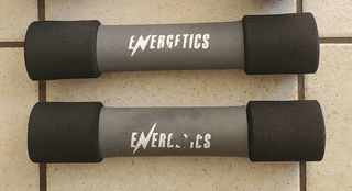 Extenseur musculation et deux altères maracas musicaux N°1434 A prendre sur place uniquement Un grand extenseur de musculation noir rembourré d'une mousse à la fois solide et