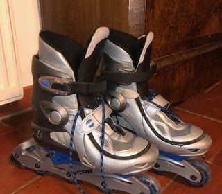 Paire de rollers enfant (taille réglable de 35 à 38). Usée mais fonctionnelle.