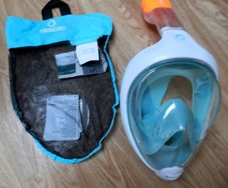 masque decathlon tribord taille S/M, tuba, vision panoramique, randonnée aquatique facile, peu utilisé