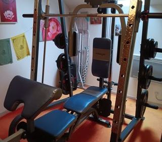 Smith machine et accessoires + chandelles et barres