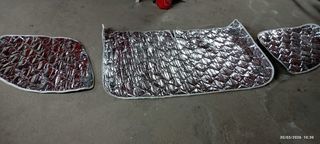 couverture isotherme alu a ventouse pour intérieur pare-brise et vitres portières de camping car Fiat Ducato X230/250 quasi neuf, avec housse de rangement.