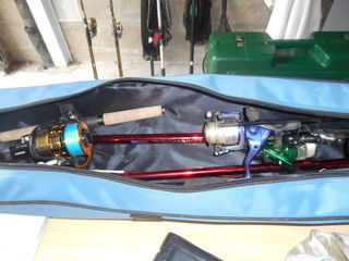 Plus de 20 cannes toutes pêches, et matériel associé (épuisette, valises de transport, hameçons, etc... et tous accessoires).