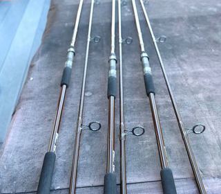 3 cannes carpe ROD HUTCHINSON Dream Marker. 3,9 m/ 3 Lbs. Poignée mousse,porte moulinet Fuji,anneau de départ 40mm. Vernis du blank impeccable Cannes montées en Angleterre; Pas