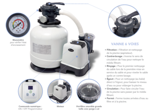 Pompe de piscine et filtration INTEX crystal clear SX 1500 hydro-aération technologie 4 M3/h avec vanne 6 voies. Prévu pour 12 Kg de sable (non fourni). Appareil neuf complet dans