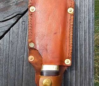 Manche en bois de chevreuil et cuir étui cuir port vertical et horizontal je suis coutelier fabriquer par mes soins