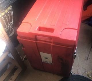 Container isotherme de professionnel, ouverture frontale, poignée inox, plus les cases en inox également.