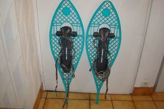 Raquettes à neige TSL Elles sont réglables, avec cale de montée Made in France Longueur maximale pour les chaussures : 33,5 cm Longueur totale des raquettes: 89 cm En bon é