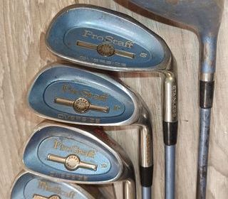 Je Vends une Demi-Série de Clubs de Golf Wilson ProStaff pour Femme en Bon État . - Bois 3, Fers 6,7, 9,P(Pitching Wedge), S(Sandwedge) Le Prix est de 60 € N'hésitez-pas à me de