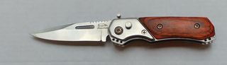 longueur totale 15 cm cran d'arrêt, position de sureté lorsque le couteau est ouvert crosse en pastique éclairage LED avec 4 piles boutons (non fournies) Remise en main propr