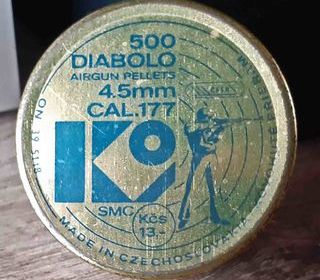 Boîte de plombs de 4,5mm entamée Vendu avec Haenel 303 modèle des années 80 Fabriquée en République Démocratique Allemande Très bon état, quelques traces d'usage (Photo
