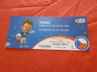 Pour les collectionneurs de l'UEFA 2016 : Billet de foot TOURS Stade de la Vallée du Cher entraînement à TOURS de l'équipe Tchèque ouvert au Public le mercredi 08 Juin 2016.