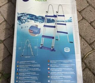 Bonjour Echelle neuve pour piscine hors sol Jamais servie, jamais montée Les sachets de fixations sont fermés Dimensions sur le carton Carton abîmé car stocké dans un