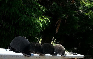 Toques bombes coiffes casque d'équitation en très bon état. Vendus cause cessation d'activité. Très confortables et indispensables "couvre-chefs" tous de taille 57. L'un d'eux éta