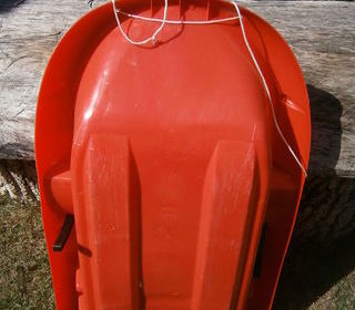 LUGE PLASTIQUE RIGIDE AVEC FREINS ANSE DE TRACTION 58 CM? X 91 CM TB ETAT