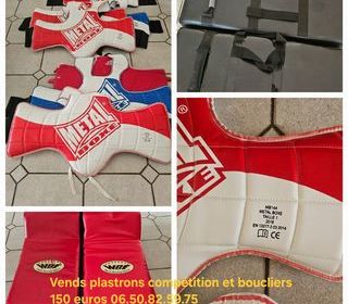 Vends des plastrons pour les combats et boucliers de frappe lors des entraînements à chercher sur Perpignan