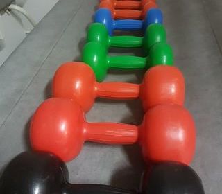 Vends série de 18 haltères de 0,300 à 6 kg Valeur neuf 210 euros Téléphone uniquement